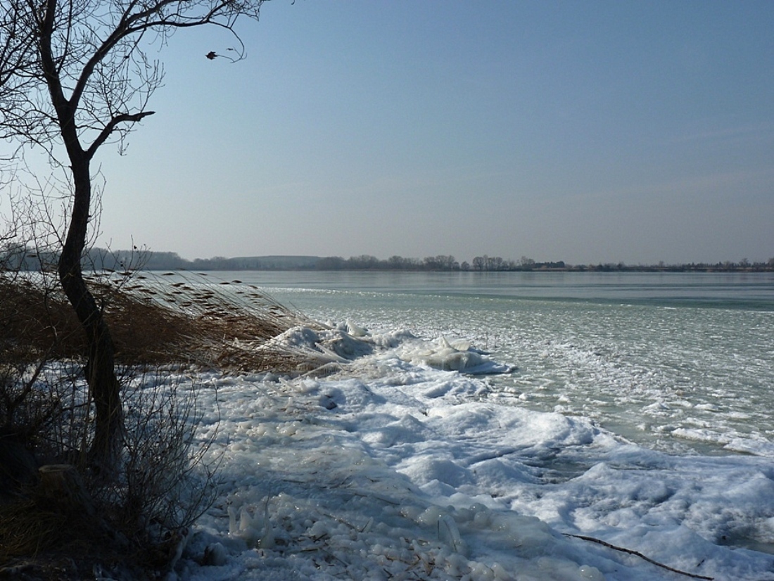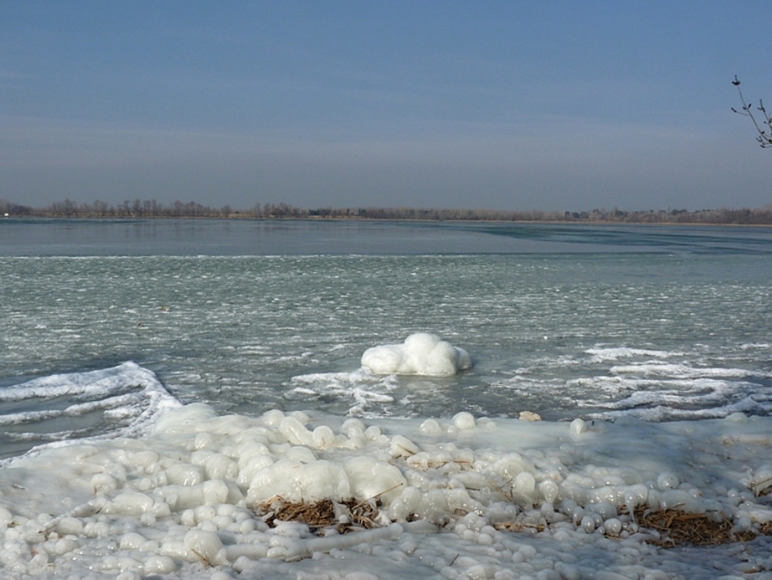 Regardez, l'étang est tout gelé, les vaguelettes ont été figées dans la glace! Mettez en plein écran, croyez-moi, c'est impressionnant!Espérons que ce mois de février soit plus clément que l'année dernière!